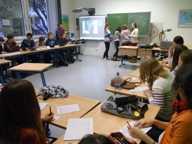 In kleineren Gruppen mit maximal fünf Schülern suchten wir uns dazu konkrete Unterthemen und Fragestellungen. Herrscht in Frankfurt Kindermangel? Wie hat sich die Umwelt in Frankfurt innerhalb der letzten Jahre geändert? Welche Rolle spielt Leiharbeit in Frankfurt? Für Antworten auf solche Fragen machten sich die Arbeitsgruppen auf die Suche nach Informationen. Einige recherchierten bei städtischen Behörden, im Arbeitsamt, in Krankenhäusern oder Kindergärten. Andere machten Interviews und Umfragen mit Bürgern, zum Beispiel am Flughafen oder in der Innenstadt.